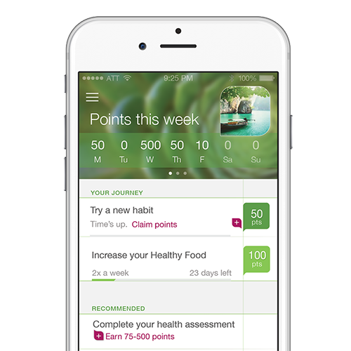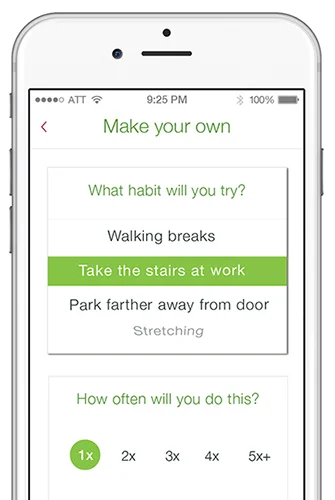 We encouraged users to identify habits they could easily incorporate into their schedules as well as set a long-term goal they would work toward. Users earned points for doing the habits on a regular basis and kept track of how close they were to achieving their goals (such as losing weight, developing better sleep habits or eating healthy).