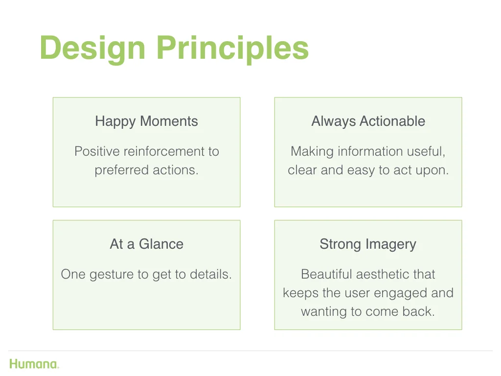 After I rolled of the project, the Humana team continued deploying the processes we established to further develop the application and roll it out to their customer base. In addition, the Humana team members we collaborated with opened the in-house Humana Digital Experience Center based on their experiences working with us.